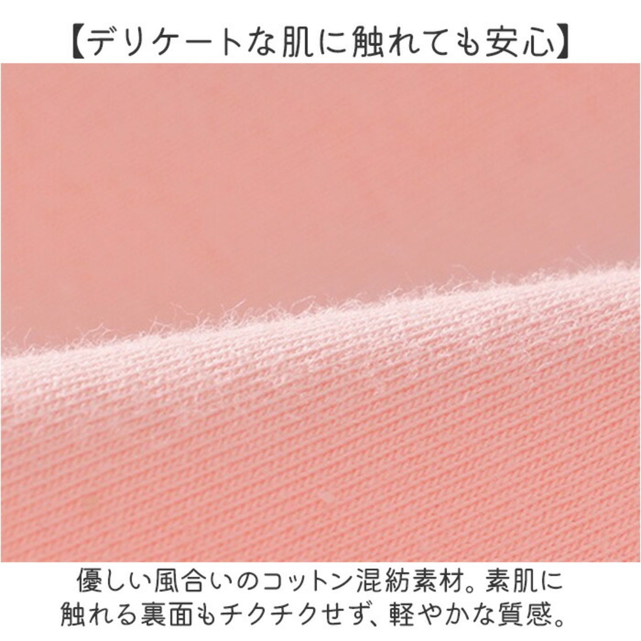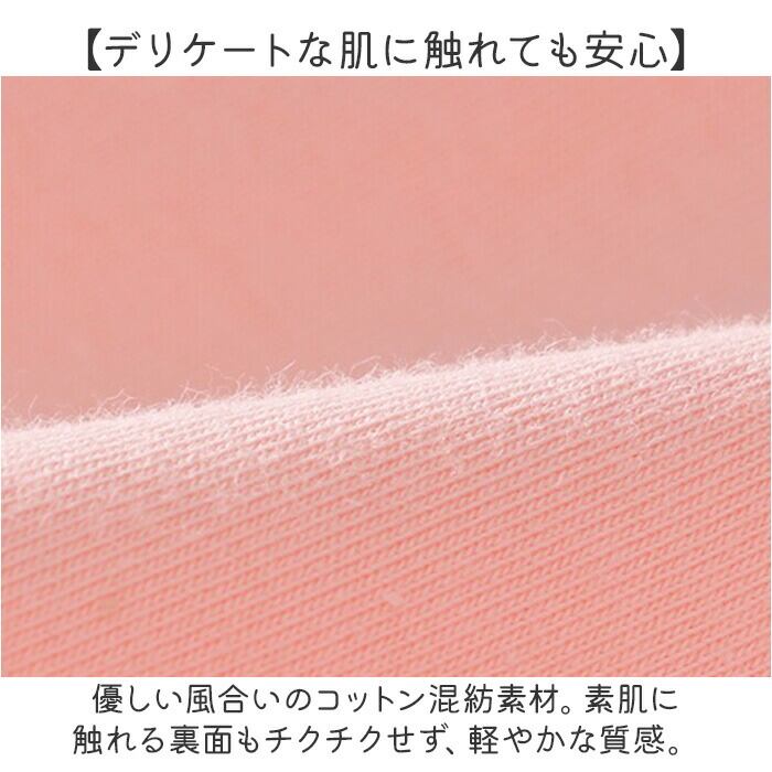 ・優しい風合いのコットン混紡素材。素肌に触れる裏面もチクチクせず、軽やかな質感。
