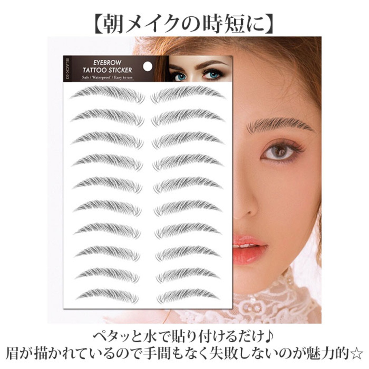 ・ペタッと水で貼り付けるだけ♪眉が描かれているので手間もなく失敗しないのが魅力的☆