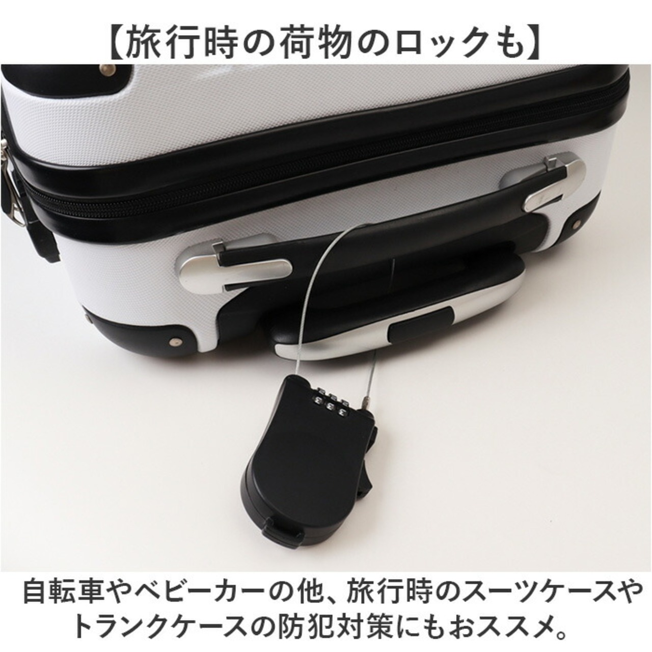 ・自転車やベビーカーの他、旅行時のスーツケースやトランクケースの防犯対策にもおススメ。