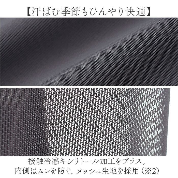 ・接触冷感キシリトール加工をプラス。内側はムレを防ぐ、メッシュ生地を採用。