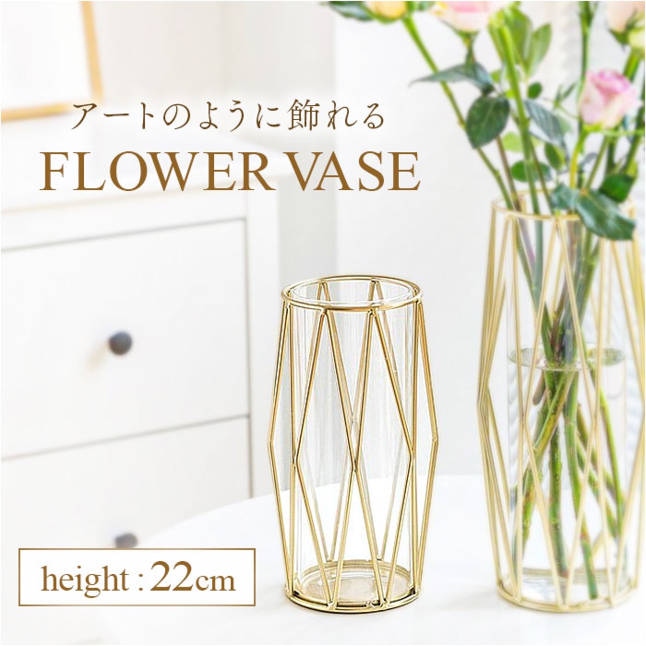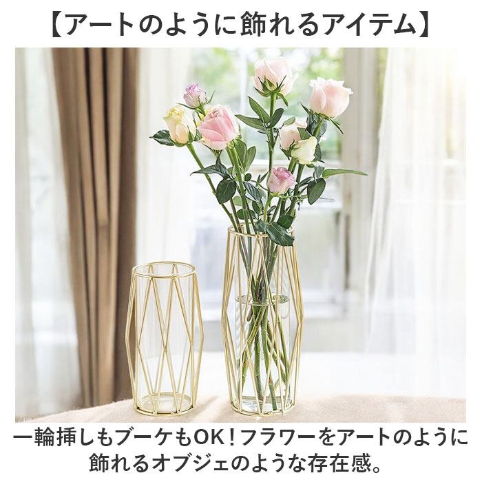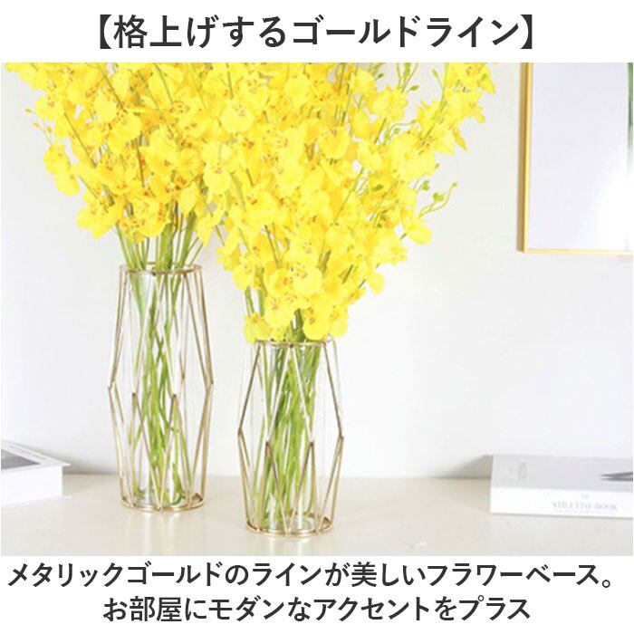 ・メタリックゴールドのラインが美しいフラワーベース。お部屋にモダンなアクセントをプラス