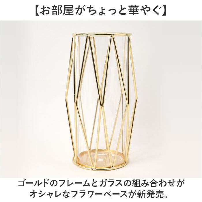 ・ゴールドのフレームとガラスの組み合わせがオシャレなフラワーベースが新発売。