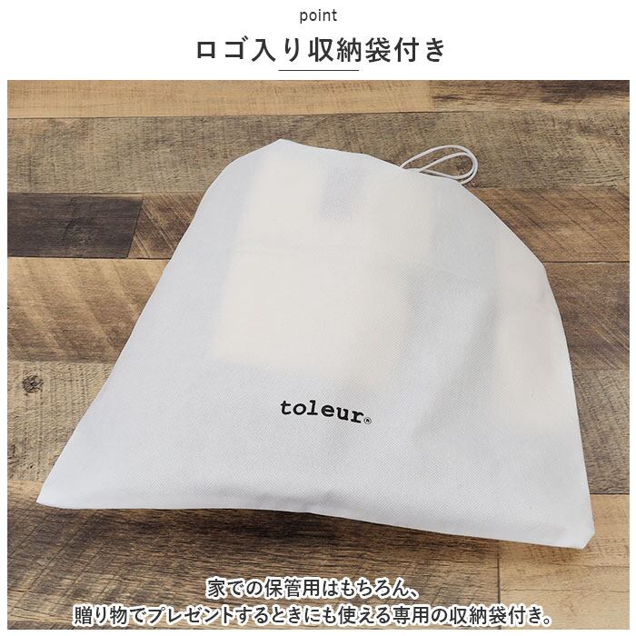 ・家での保管用はもちろん、贈り物でプレゼントするときにも使える専用の収納袋付き。