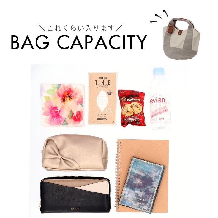 ・お出かけに必要な荷物がすっきりまとめられるサイズ。500mlペットボトルや長財布、厚めのポーチ等の収納が可能◎