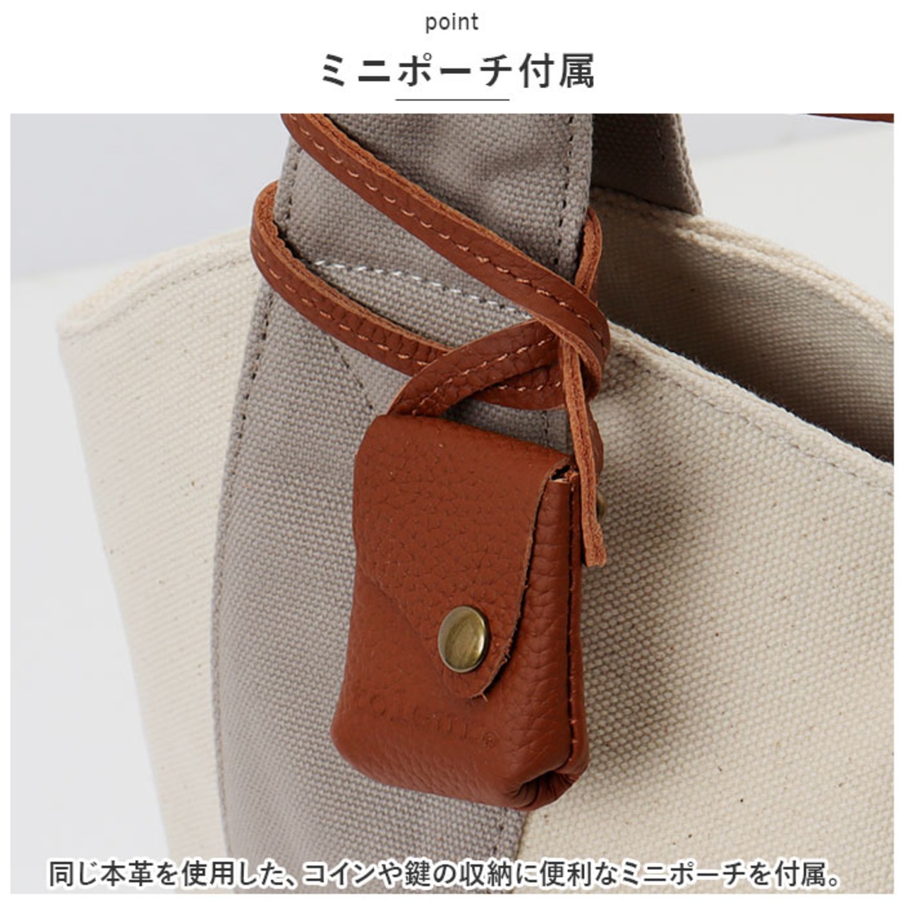 ・同じ本革を使用した、コインや鍵の収納に便利なミニポーチを付属。