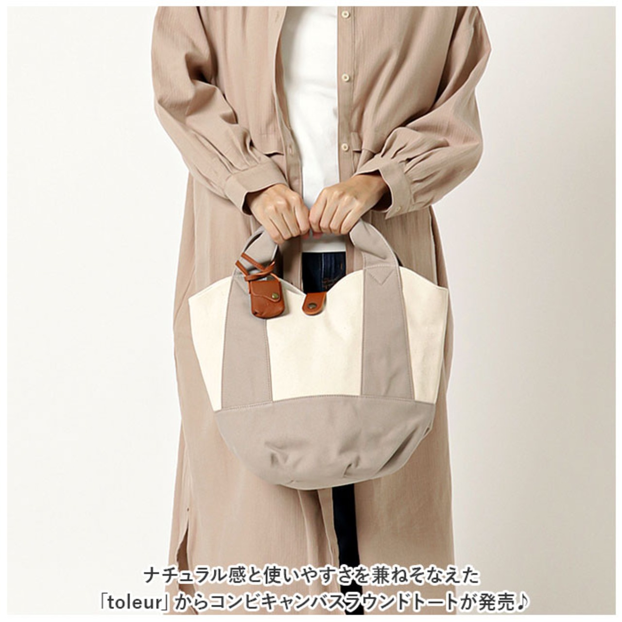 ・ナチュラル感と使いやすさを兼ねそなえた「toleur」からコンビキャンバスラウンドトートが発売♪