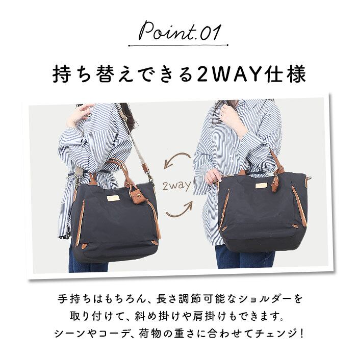 ・お出かけや通勤、旅行などでも重宝。ちょっとおしゃれなマザーズバッグとしてもおすすめ。