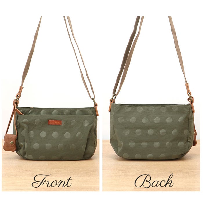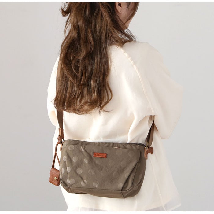 ・軽くて丈夫なナイロン生地に熱加工でドット柄デザインに。さりげないドット柄がコーデに合わせやすく普段使いにピッタリ!