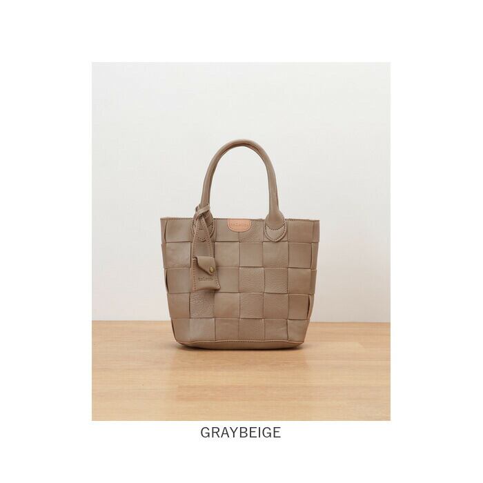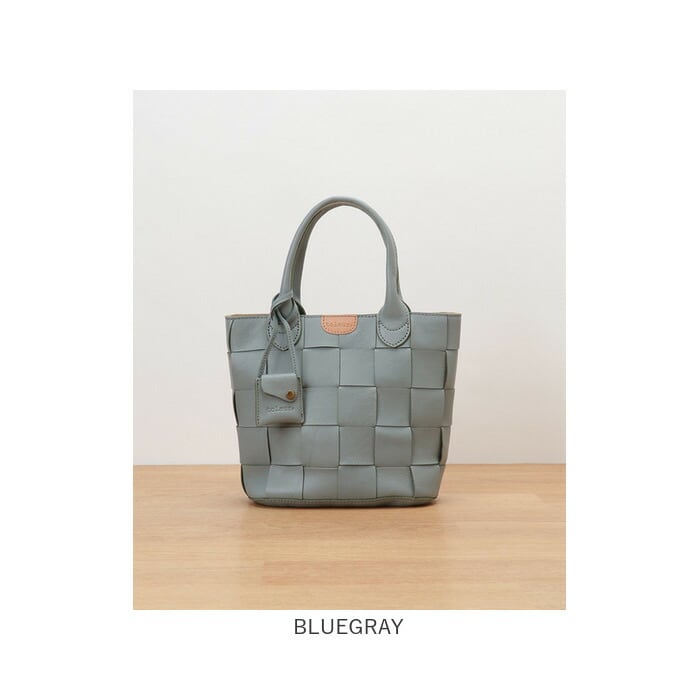 ・広幅にカットしたレザーテープを編み込み、本革ならではの風合いをしっかり楽しめる!角を丸くすることで、柔和なムードに。