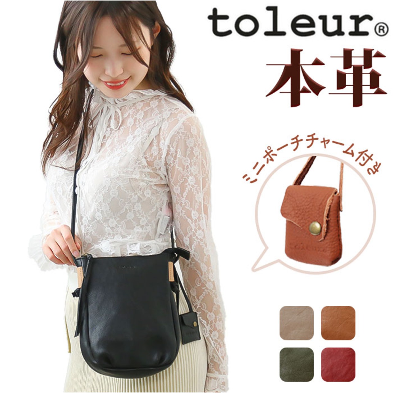 toleur ショルダーバッグ 11875 トーラ 通販 ショルダーバック ショルダー バッグ レディース 斜めがけ ブランド 大人 レザー 革 ミニショルダー 旅行 お出かけ おしゃれ かわいい シンプル カウレザータックミニサコッシュ 牛革 レディースバッグ