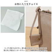 ・コーデに取り入れやすい、落ち着きのあるカラーをラインナップ。取り外し可能なミニポーチチャームと、不織布素材の収納袋付き。