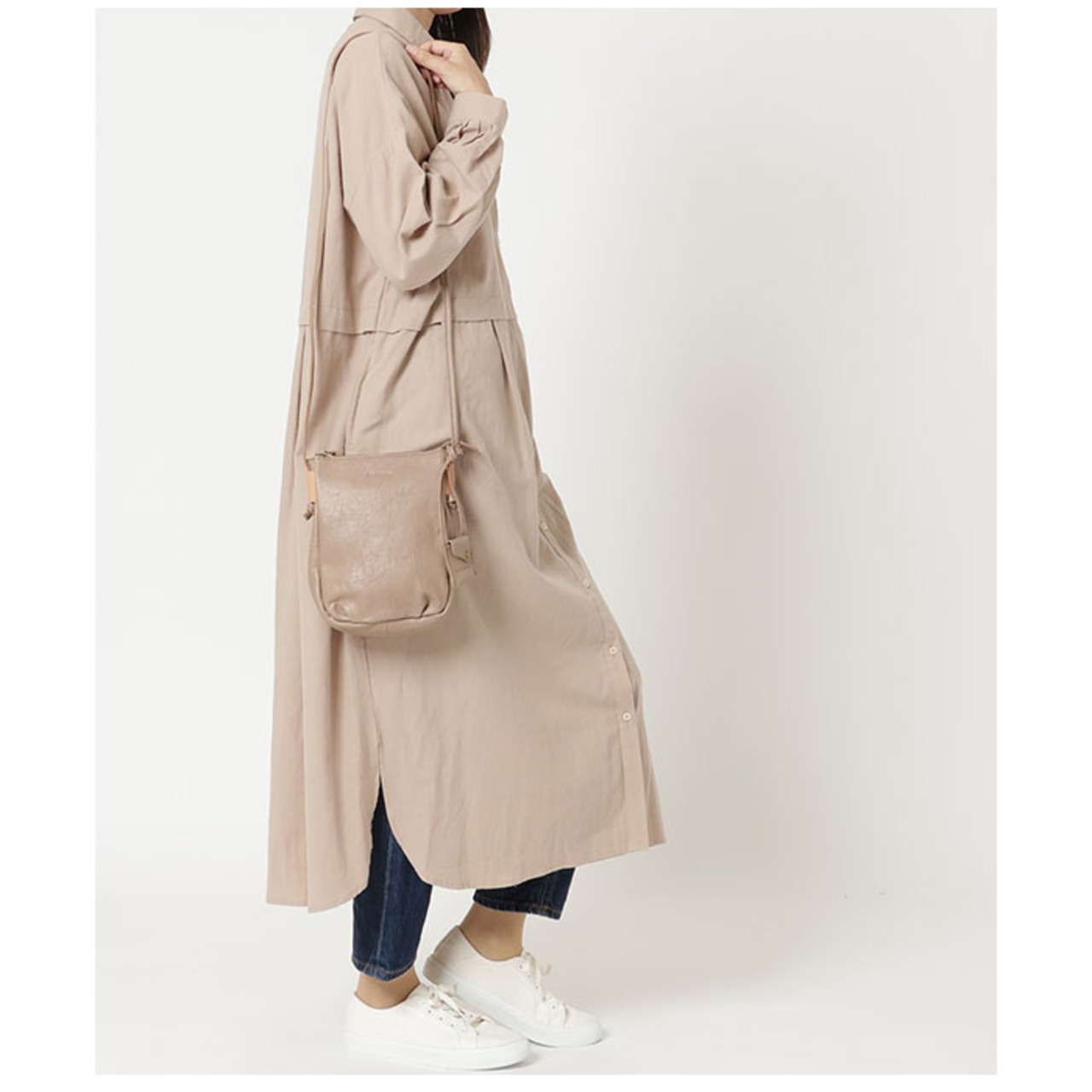 ・ミニ財布やハンカチ、スマホなどを収納可能。かさばりにくいマチ設計で、カジュアルにもキレイめにもすっきり馴染む♪