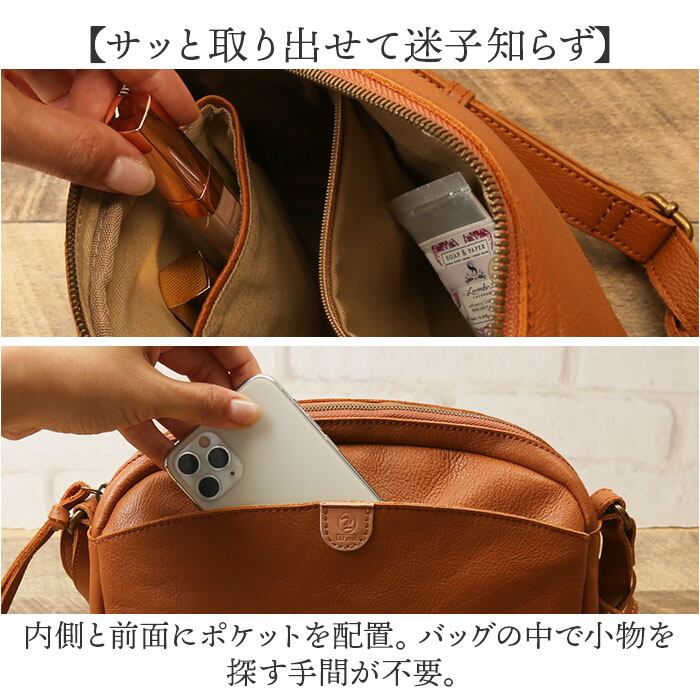 ・内側と前面にポケットを配置。バッグの中で小物を探す手間が不要。