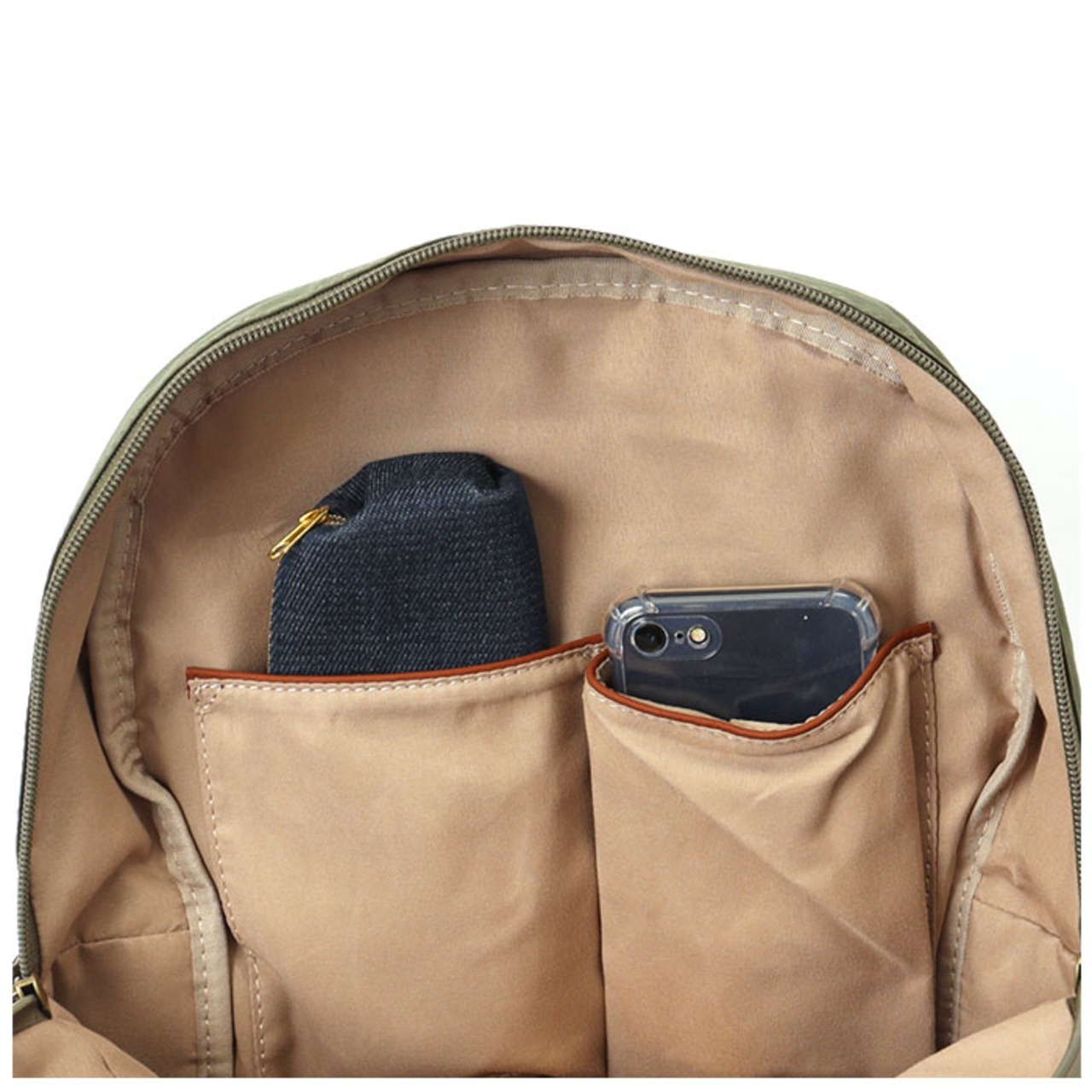 ・内側:オープンポケット×2、ファスナーポケット×1