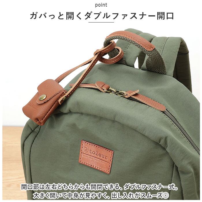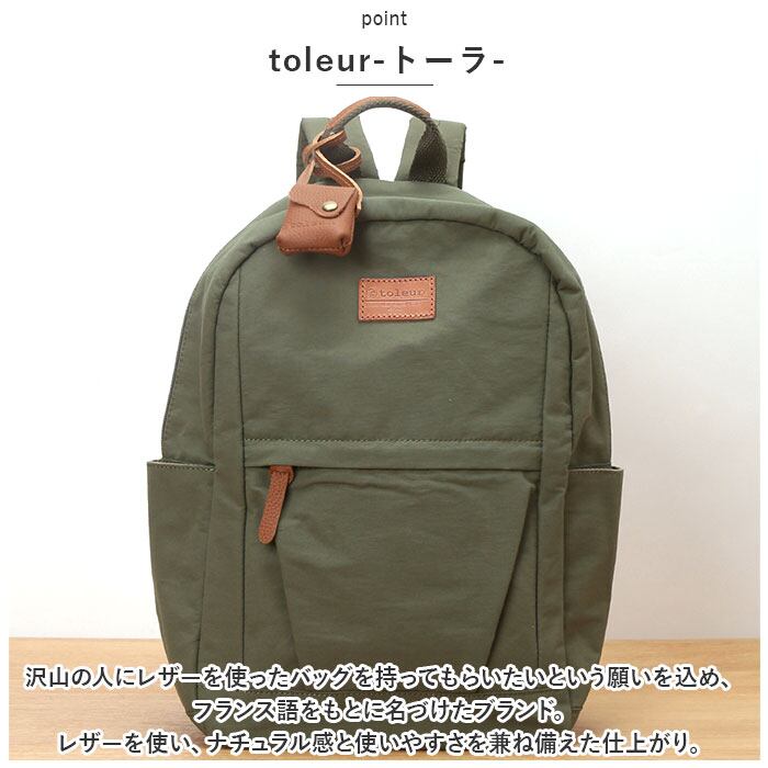toleur リュック 11893 トーラ 通販 リュックサック デイパック バックパック レディース 通学 通勤 大容量 A4 おしゃれ 軽量 軽い 大人 かわいい 女子 旅行 シンプル 無地 コットンナイロンリュック ナイロン レディースバッグ