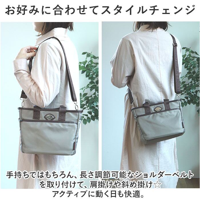 ・手持ちではもちろん、長さ調節可能なショルダーベルトを取り付けて、肩掛けや斜め掛け☆アクティブに動く日も快適。