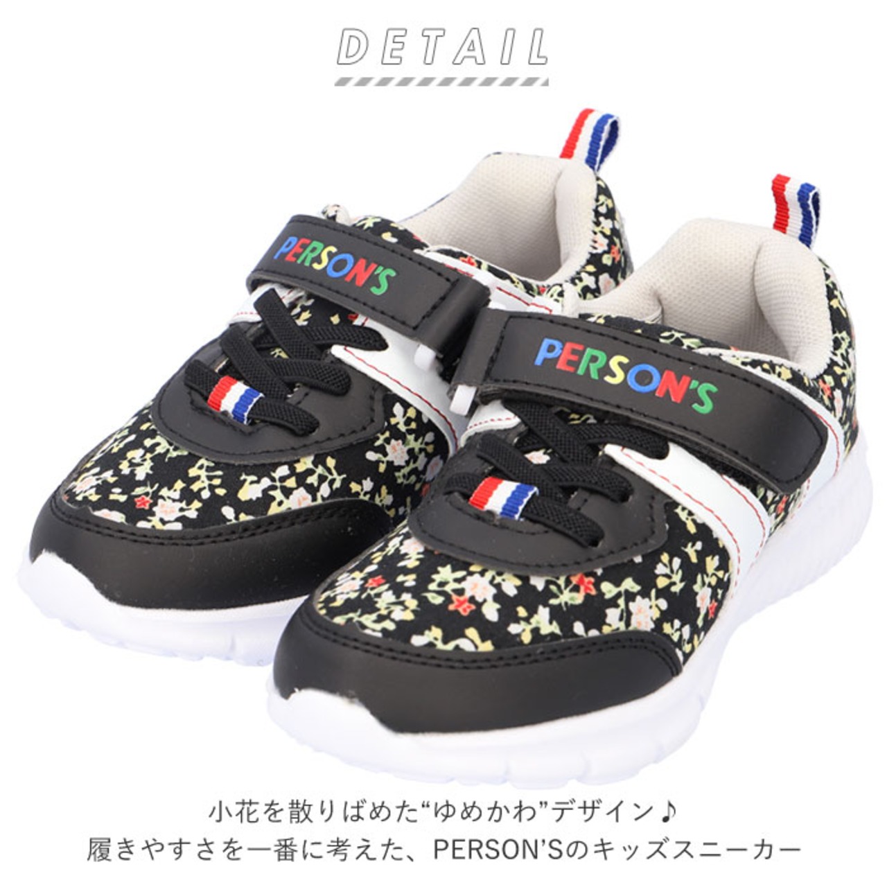 ・小花を散りばめた“ゆめかわ”デザイン♪履きやすさを一番に考えた、PERSON’Sのキッズスニーカー。