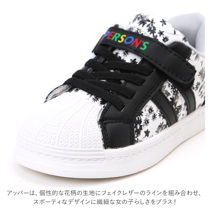 ・小花を散りばめた“ゆめかわ”デザイン♪履きやすさを一番に考えた、PERSON’Sのキッズスニーカー。