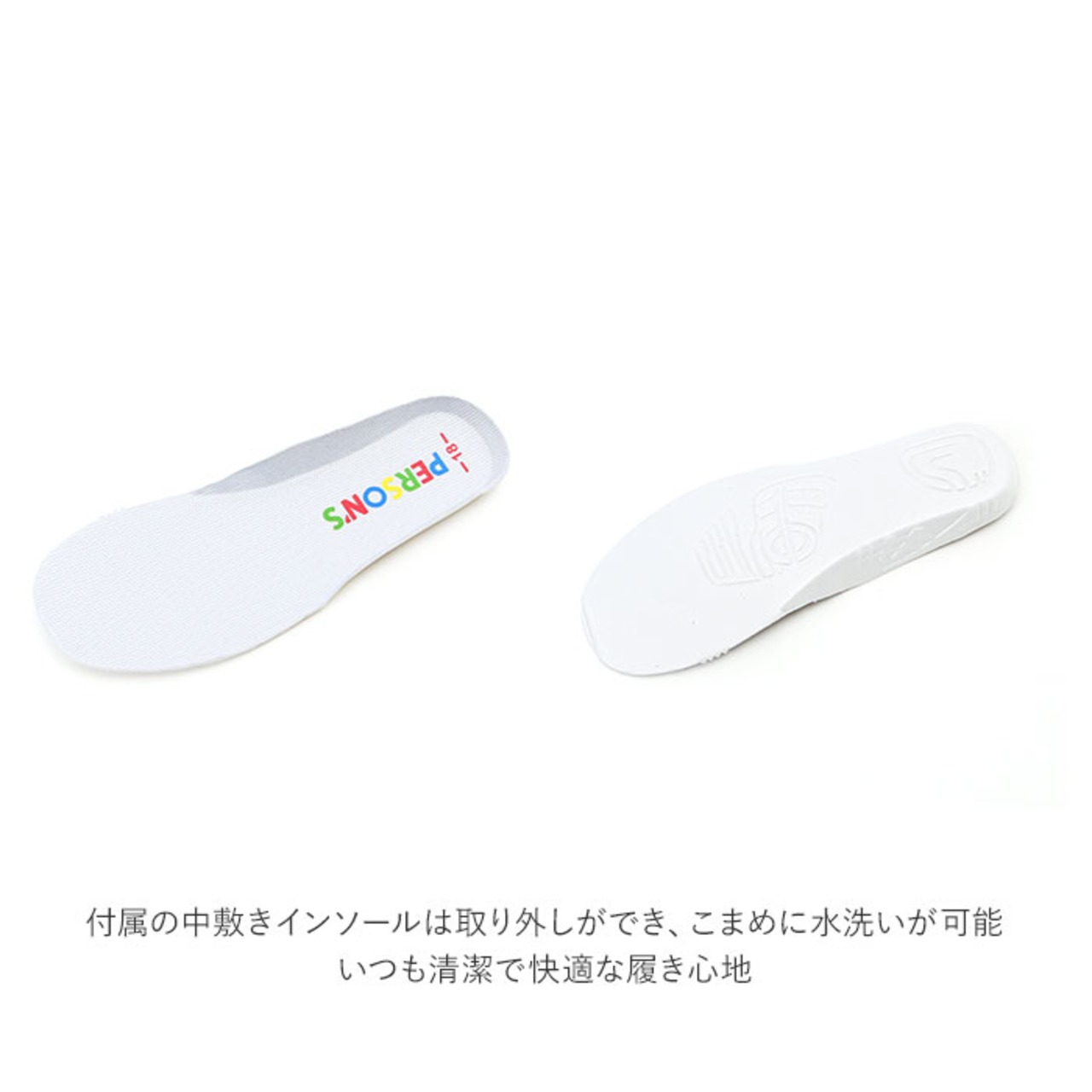 ・付属の中敷きインソールは取り外しができ、こまめに水洗いが可能。いつも清潔で快適な履き心地。