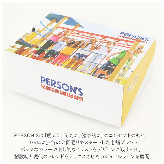 ・PERSON’Sは「明るく、元気に、健康的に」のコンセプトのもと、1976年に渋谷の公園通りでスタートした老舗ブランド。ポップなカラーや楽し気なイラストをデザインに取り入れ、創設時と現代のトレンドをミックスさせたカジュアルラインを展開。