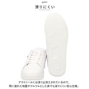 ・アウトソールには滑り止加工されているので、雨に濡れた地面やツルツルとした床でも滑りにくい安心仕様。