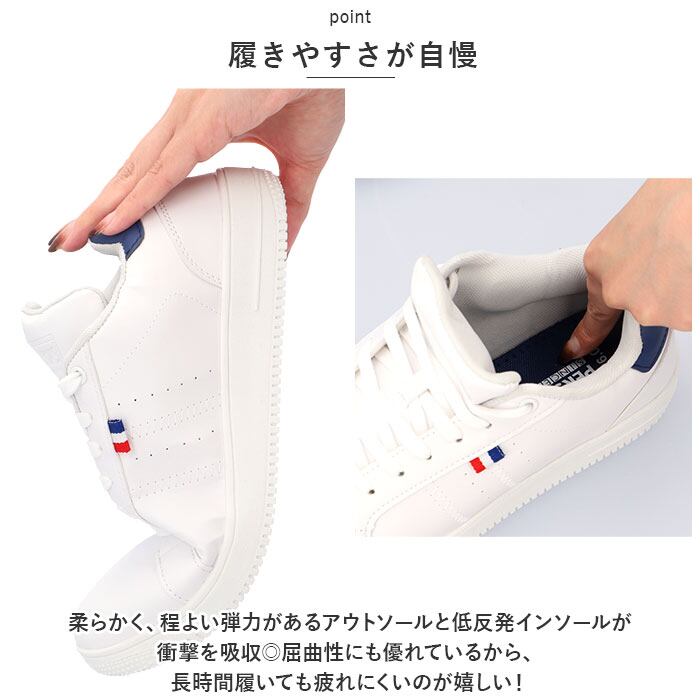 ・柔らかく、程よい弾力があるアウトソールと低反発インソールが衝撃を吸収◎屈曲性にも優れているから、長時間履いても疲れにくいのが嬉しい!