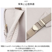 ・背面とショルダーベルトは程よいクッション性があり、体にかかる負担を軽減。