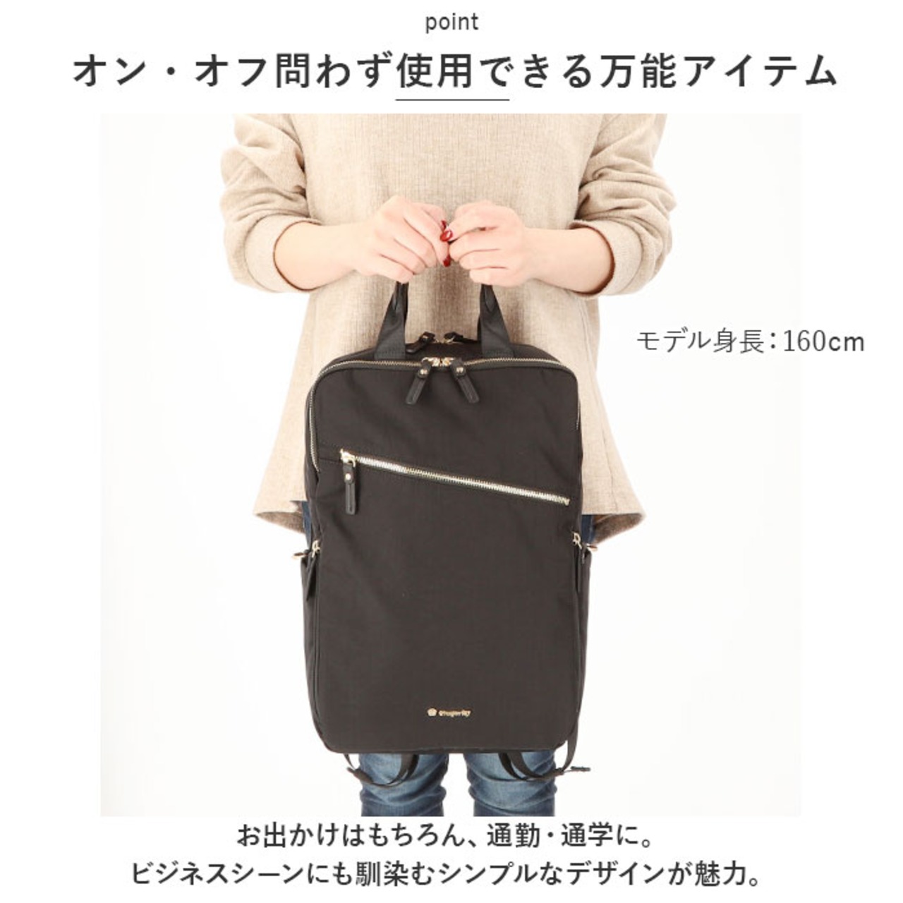 ・お出かけはもちろん、通勤・通学に。ビジネスシーンにも馴染むシンプルなデザインが魅力。