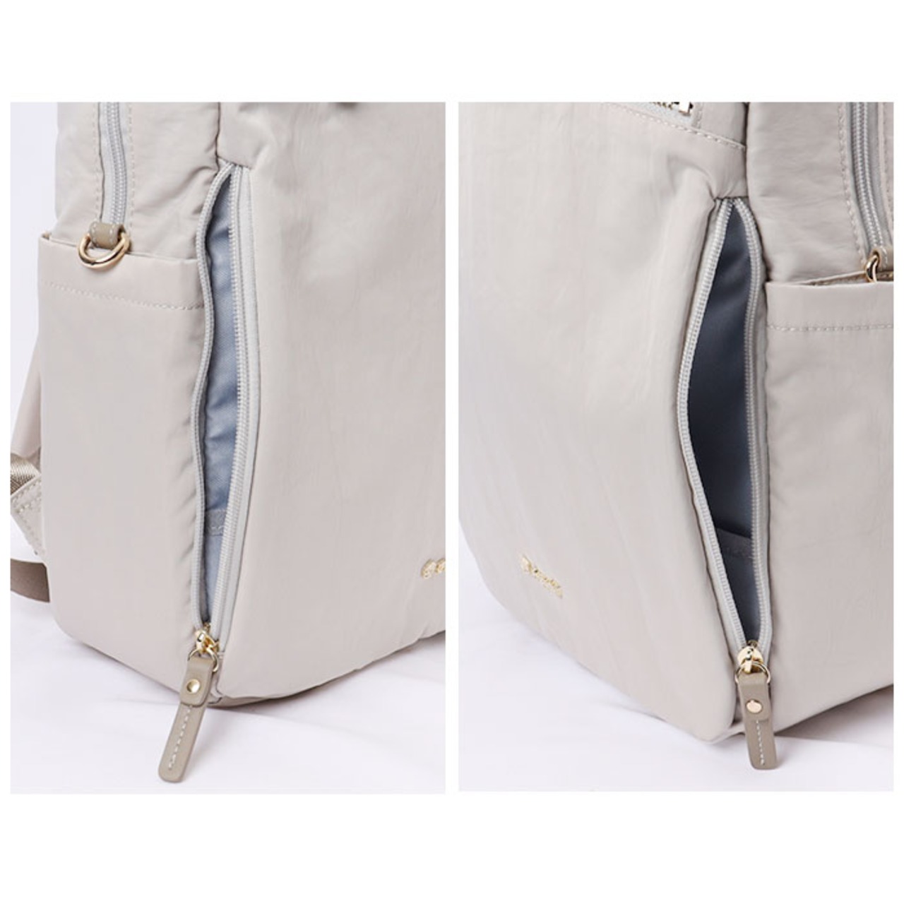 ・開口部は左右どちらからも開閉できる、ダブルファスナー式。ガバっと開いて中身が見渡しやすく、出し入れがラクラク。