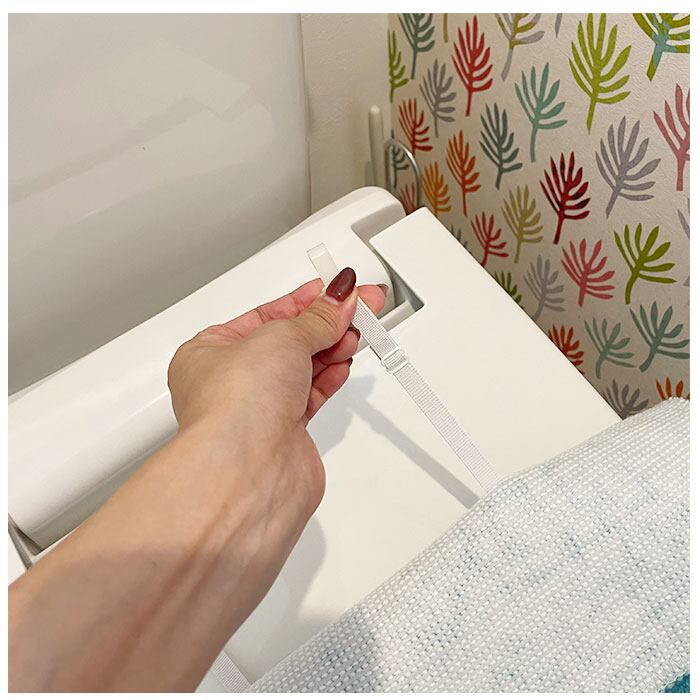 ・縦44cm以下、横40cm以下の便座に対応。ゴムフックで着脱できるから、洗濯時もスムーズに準備OK。洗濯後のセットもあっという間◎