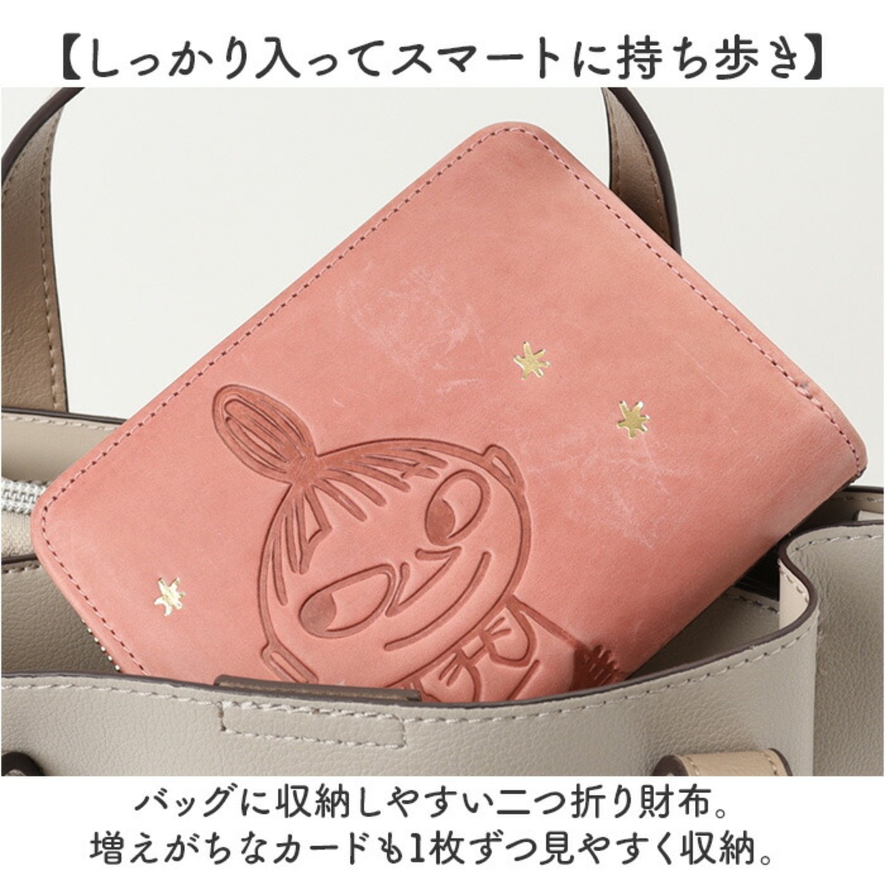 ・世界中で愛されるMOOMINの仲間たちを、前面に大きく型押し♪「二つ折り財布」。