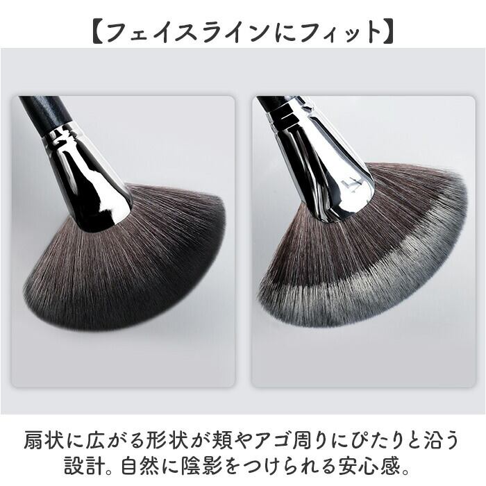 ・扇状に広がる形状が頬やアゴ周りにぴたりと沿う設計。自然に陰影をつけられる安心感。