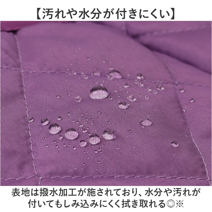 ・表地は撥水加工が施されており、水分や汚れが付いてもしみ込みにくく拭き取れる◎※