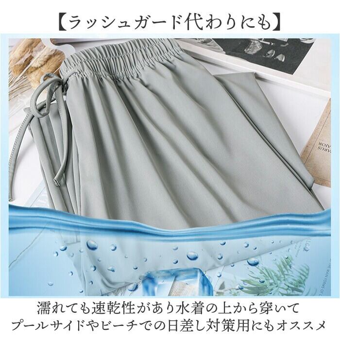 ・濡れても速乾性があり水着の上から穿いてプールサイドやビーチでの日差し対策用にもオススメ