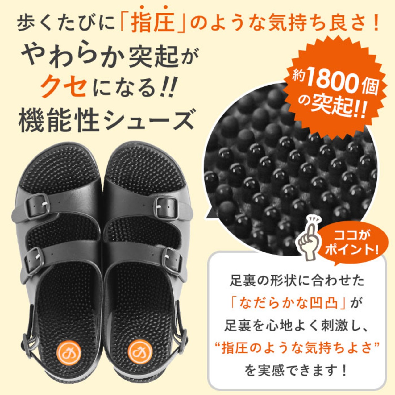 ・足裏の形状に合わせたなだらかな凹凸が衝撃を分散し、足の裏全体を心地よく刺激し足が喜ぶ。