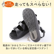 ・ソールのかかと部分に滑りにくいラバーを使用している為、急いで歩いている時も安心。