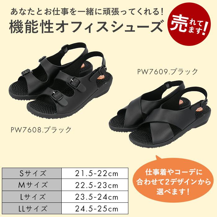 ナースサンダル ピュアウォーカー 通販 疲れにくい ナースシューズ 静音 黒 白 疲れない オフィスサンダル オフィスシューズ 歩きやすい 軽量 シンプル l ll サイズ s m サイズ 約 22cm 約 23cm 約 24cm 約 25c ピュアウォーカーヘルス pw7608 pw7609