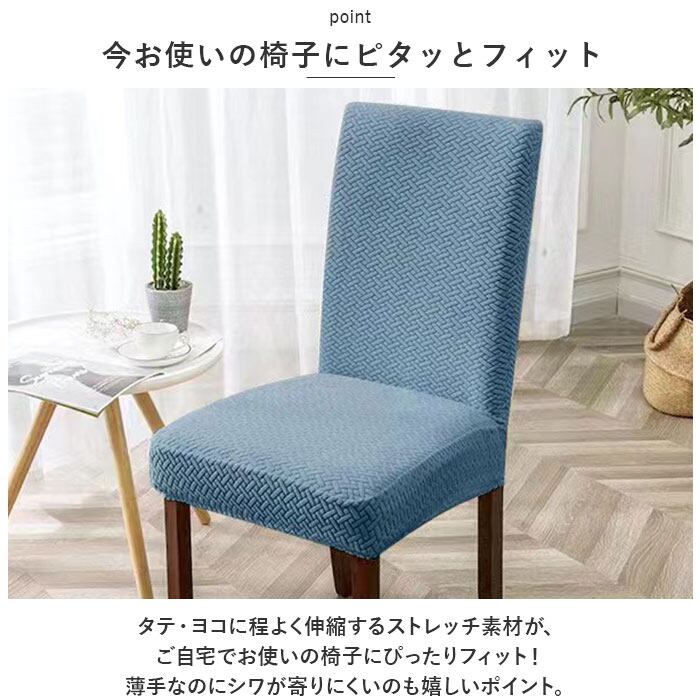 ・タテ・ヨコに程よく伸縮するストレッチ素材が、ご自宅でお使いの椅子にぴったりフィット!薄手なのにシワが寄りにくいのも嬉しいポイント。