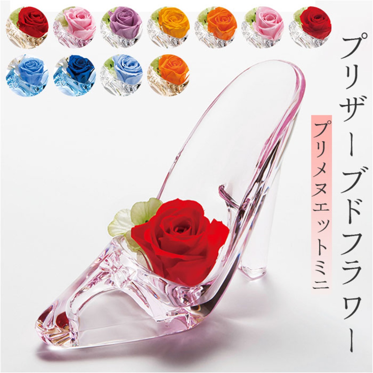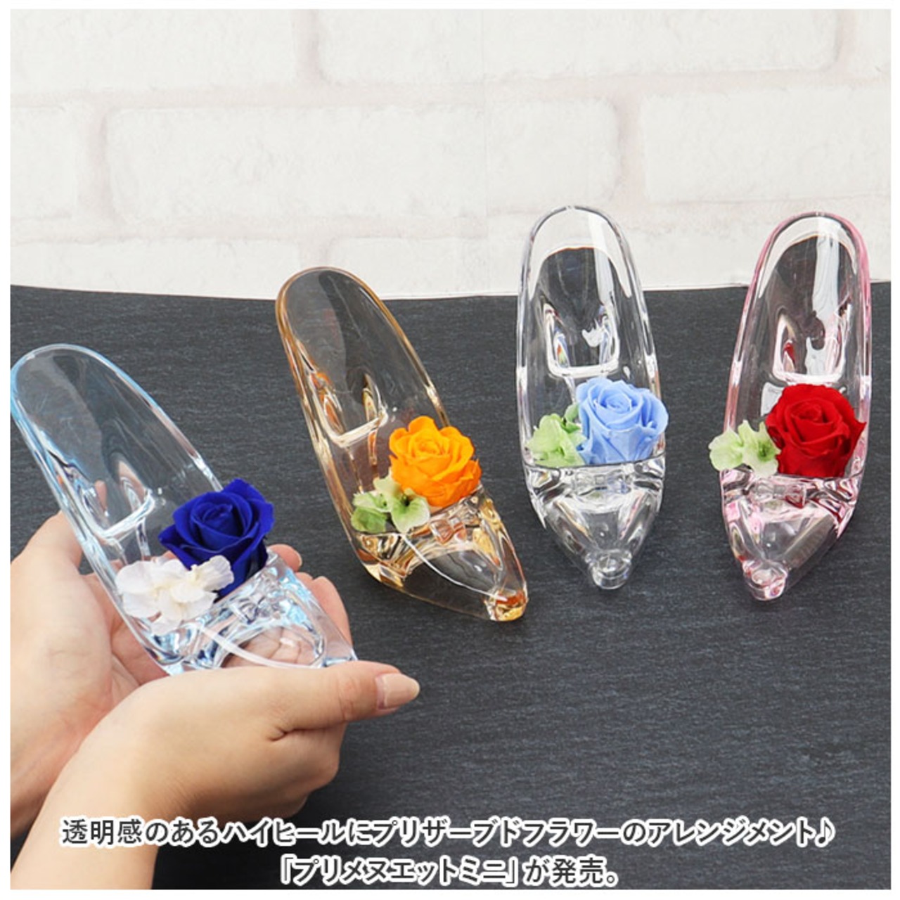 ・透明感のあるハイヒールにプリザーブドフラワーのアレンジメント♪「プリメヌエットミニ」が発売。
