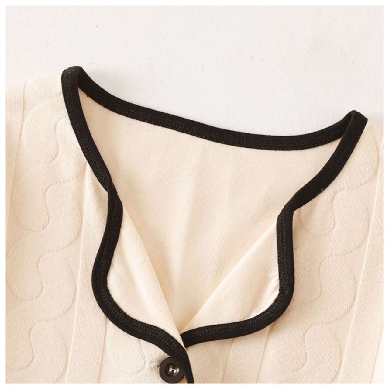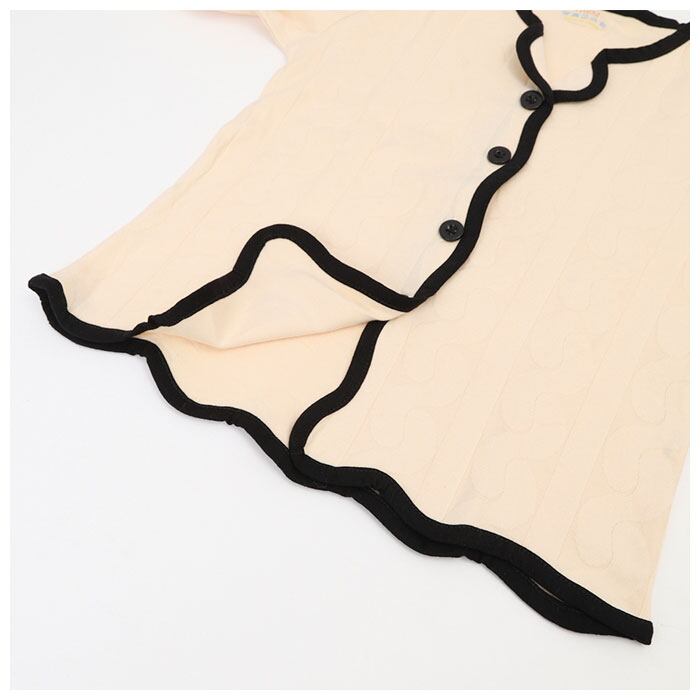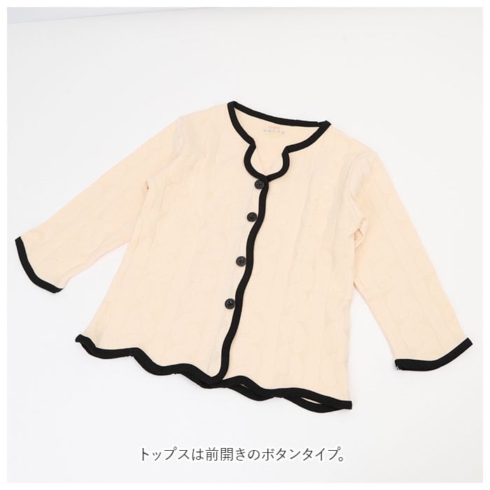 ・トップスは前開きのボタンタイプ。