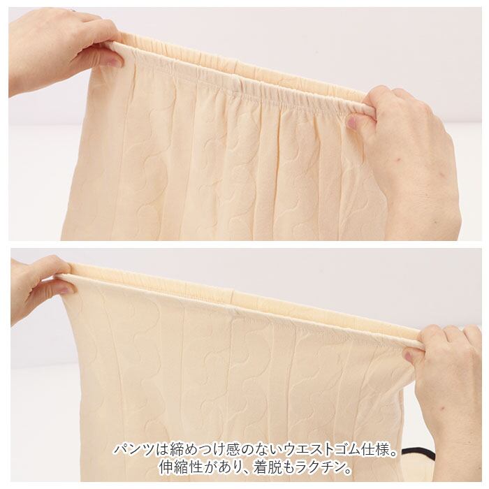 ・パンツは締めつけ感のないウエストゴム仕様。伸縮性があり、着脱もラクチン。