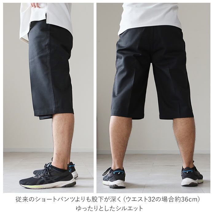 ・従来のショートパンツよりも股下が深く(ウエスト32の場合約36cm)、ゆったりとしたシルエット。