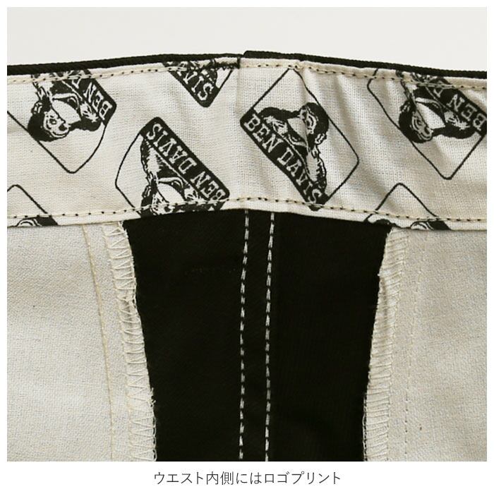 ・左バックポケットにBEN DAVISのロゴタグ、ウエスト内側にはロゴプリントがありシンプルなデザインの中にも所々にアクセントが♪