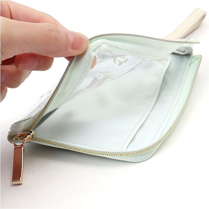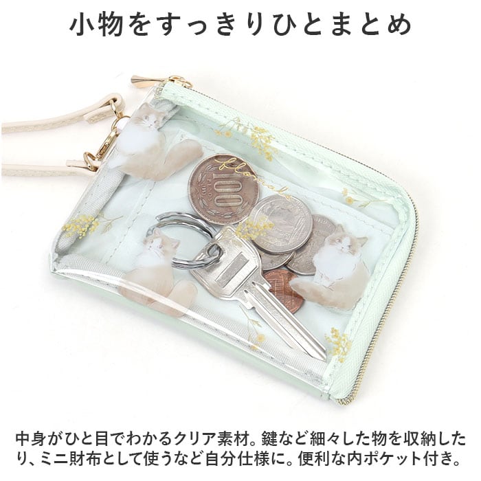 ・中身がひと目でわかるクリア素材。鍵など細々した物を収納したり、ミニ財布として使うなど自分仕様に。便利な内ポケット付き。