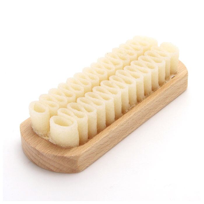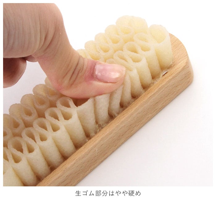 ・クレープ状の生ゴムブラシで起毛革の汚れを落とす、スエード・ヌバック専用ブラシ。