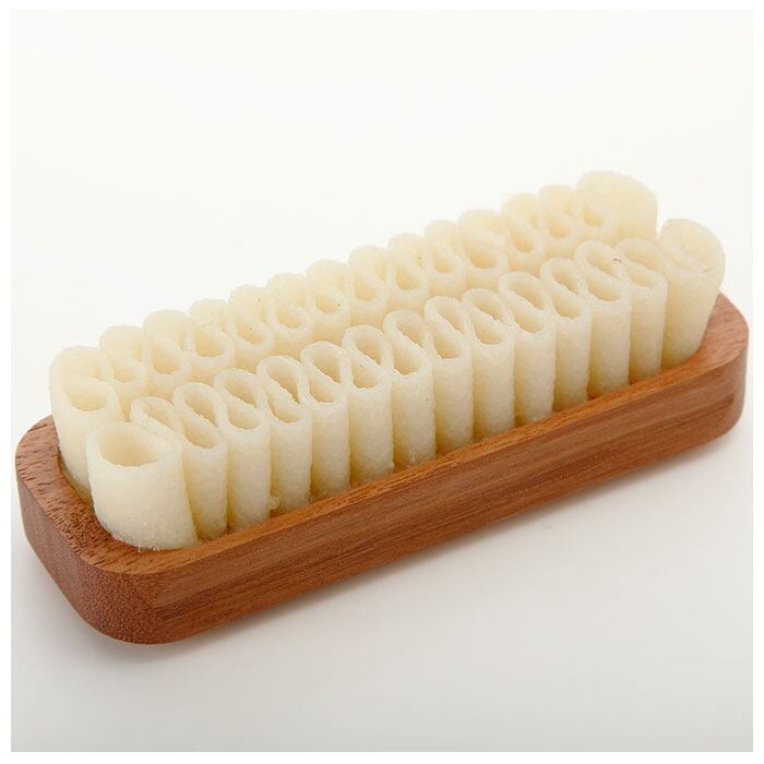 ・クレープ状の生ゴムブラシで起毛革の汚れを落とす、スエード・ヌバック専用ブラシ。