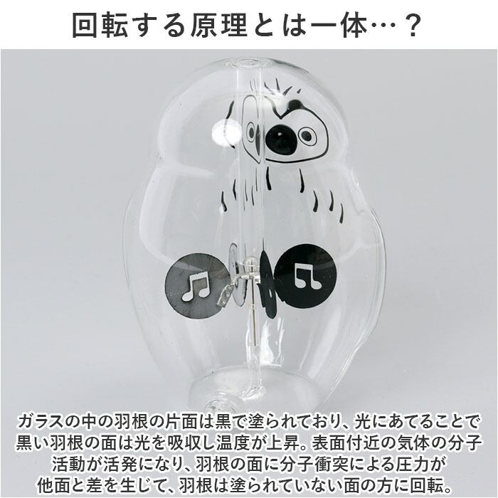 ラジオメーター 通販 ガラス 置物 かわいい ふくろう フクロウ 梟 とり トリ 鳥 光 日光 太陽光 羽根 くるくる 回転 オブジェ 科学 化学 サイエンス おしゃれ 333-286 インテリア 置き物 ギフト インテリア雑貨 インテリア小物