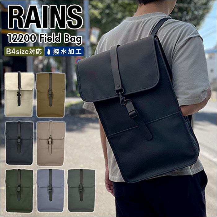 RAINS リュック レインズ 12200 Field Bag 1220 通販 バックパック リュックサック デイパック メンズ 撥水 はっ水 止水ファスナー 通勤 通学 ビジネス 大容量 A4 おしゃれ シンプル 無地 背面ファスナー ポケット スリム 薄型 薄マチ カジュアル タウンユース ユニセックス