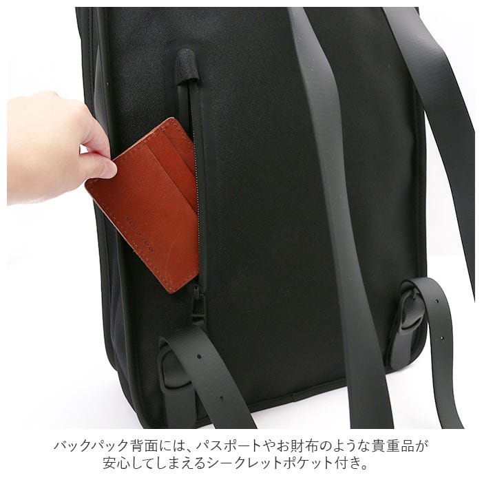 ・バックパック背面には、パスポートやお財布のような貴重品が安心してしまえるシークレットポケット付き。
