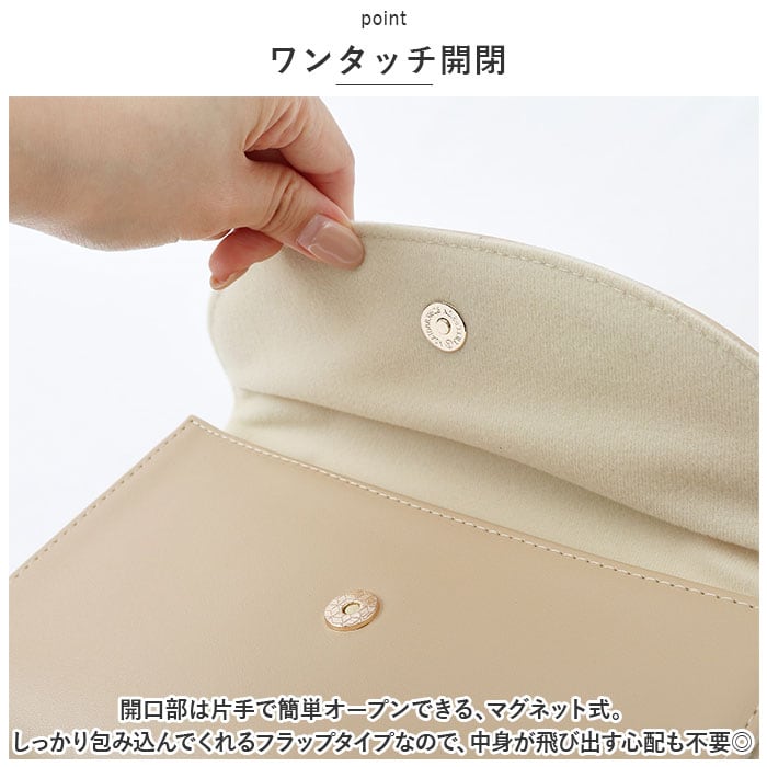 ・開口部は片手で簡単オープンできる、マグネット式。しっかり包み込んでくれるフラップタイプなので、中身が飛び出す心配も不要◎